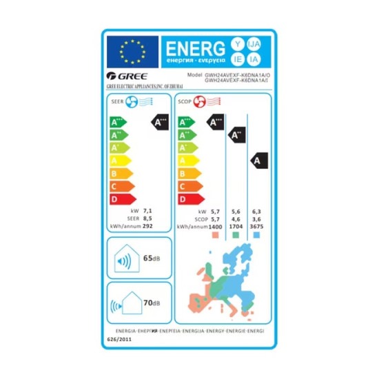 Επιτυγχάνει εποχιακούς βαθμούς απόδοσης SEER έως Α++ και SCOP A+++.