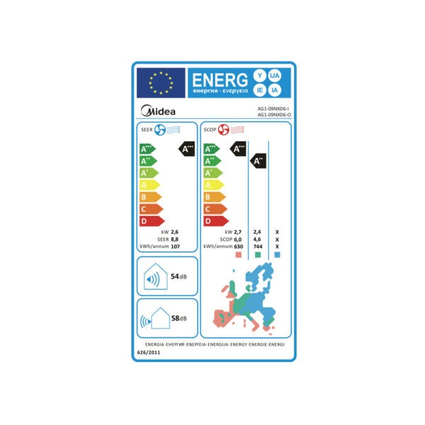 Τα κλιματιστικά Midea διαθέτουν κορυφαία ενεργειακή κλάση A+++/A+++ σε όλες τις ζώνες, χάρη στους εξαιρετικά υψηλούς εποχιακούς συντελεστές απόδοσης (SEER & SCOP). Αυτό οδηγεί σε σημαντική μείωση της κατανάλωσης ενέργειας, συμβάλλοντας παράλληλα στη μείωση των εκπομπών ρύπων και εξασφαλίζοντας τη βέλτιστη απόδοση του κλιματιστικού.