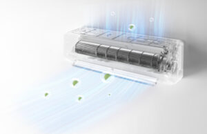 Κλιματιστικό Midea με ονομαστική ισχύ 9.000 BTU/h, υψηλή ενεργειακή απόδοση, 3D AirFlow για ομοιόμορφη κυκλοφορία αέρα, super ιονιστή και UVC τεχνολογία αποστείρωσης για καθαρή ατμόσφαιρα.