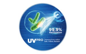 Σε αντίθεση με τη συμβατική λειτουργία αυτοκαθαρισμού, η λειτουργία αποστείρωσης στους 56°C θερμαίνει τον εναλλάκτη θερμότητας για 30 λεπτά, επιτυγχάνοντας την εξόντωση έως και 99,9% των βακτηρίων μετά από μόλις δύο κύκλους χρήσης.