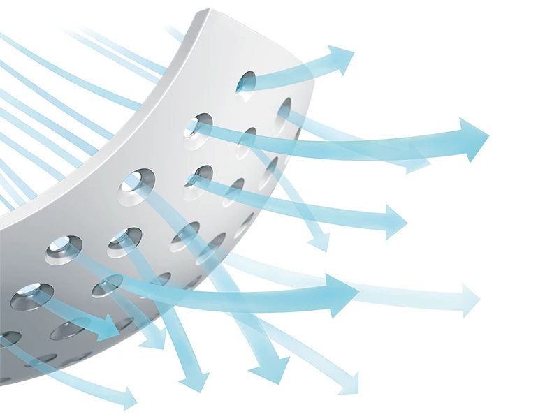 Με τη λειτουργία Breezeless δώστε τέλος στα ενοχλητικά ρεύματα του αέρα. Ρυθμίστε τις δυο διάτρητες περσίδες , εσωτερική και εξωτερική και επιλέξτε πόσο απαλή αίσθηση δροσιά επιθυμείτε. Η ειδικής διαμόρφωσης περσίδα με 5.013 μικρο-οπές, μετατρέπει το κρύο ρεύμα του αέρα σε χιλιάδες μικρoσκοπικές χορδές δροσιάς που διαχέονται προς όλες τις κατευθύνσεις.